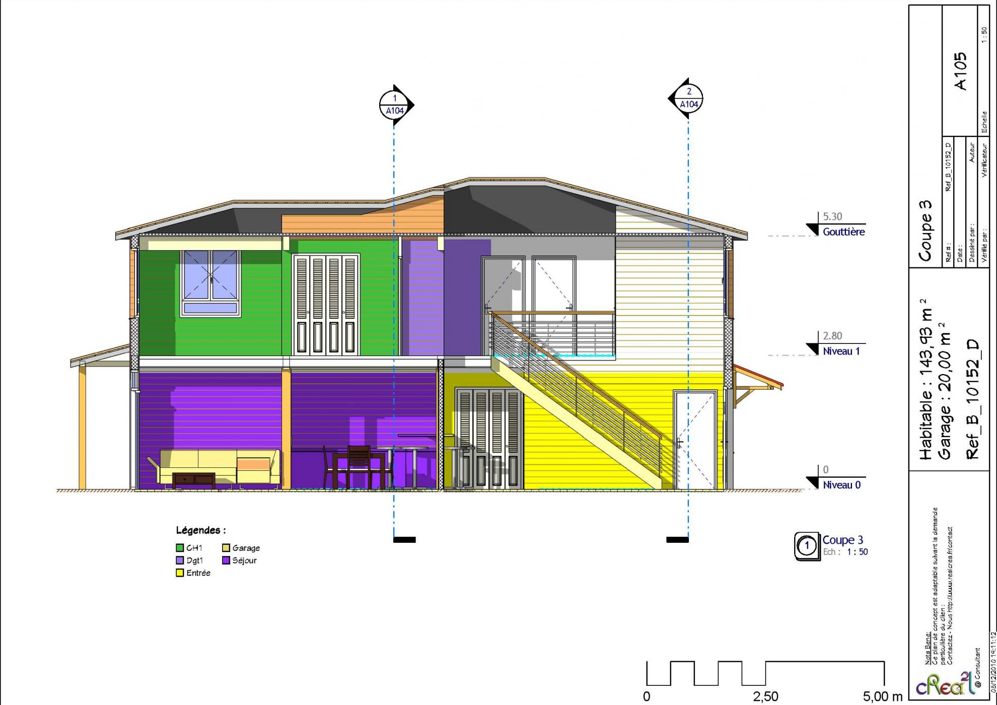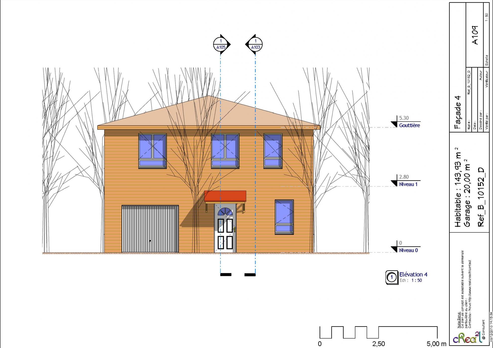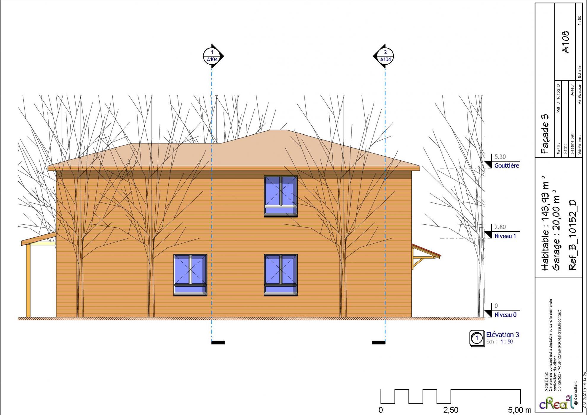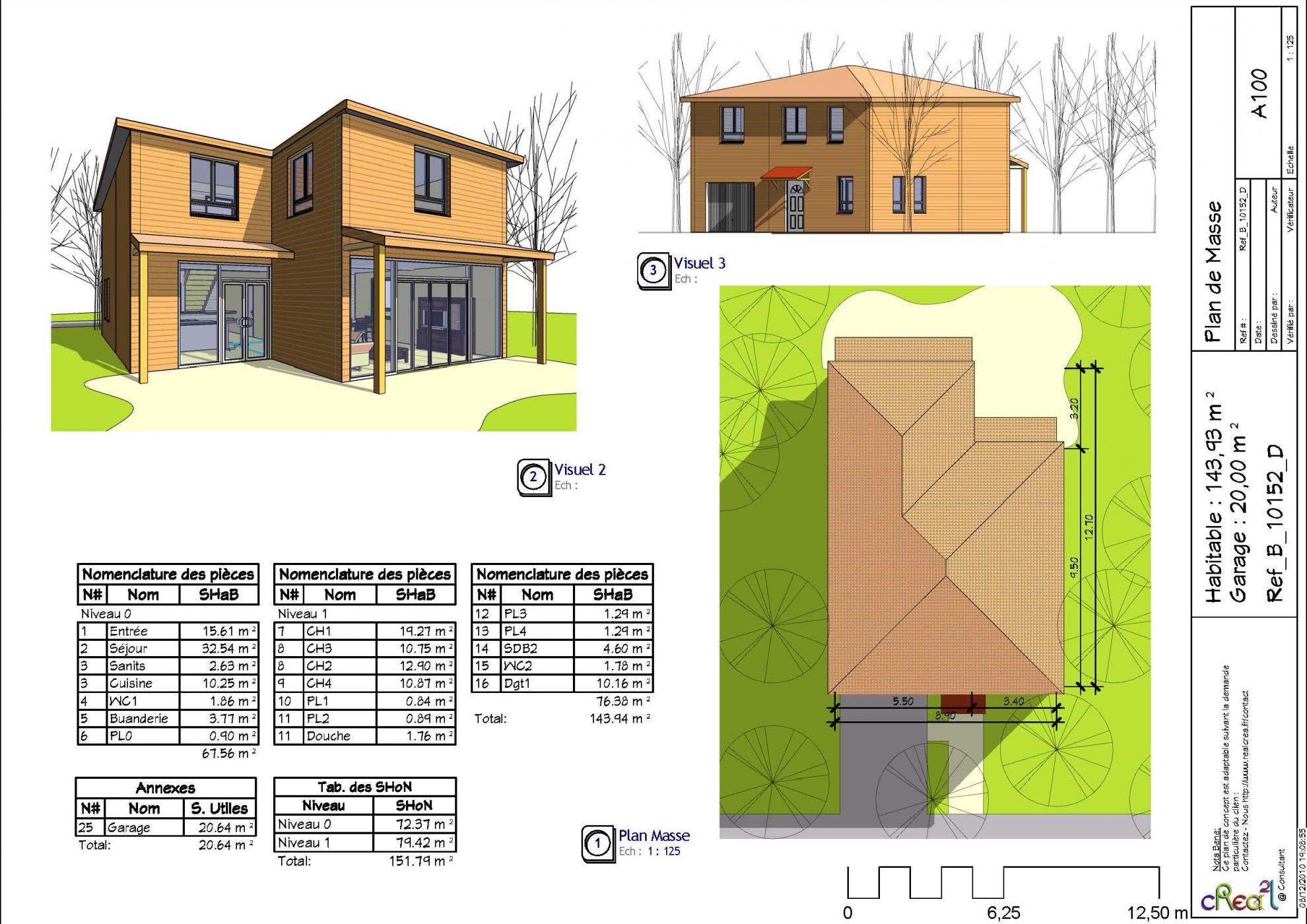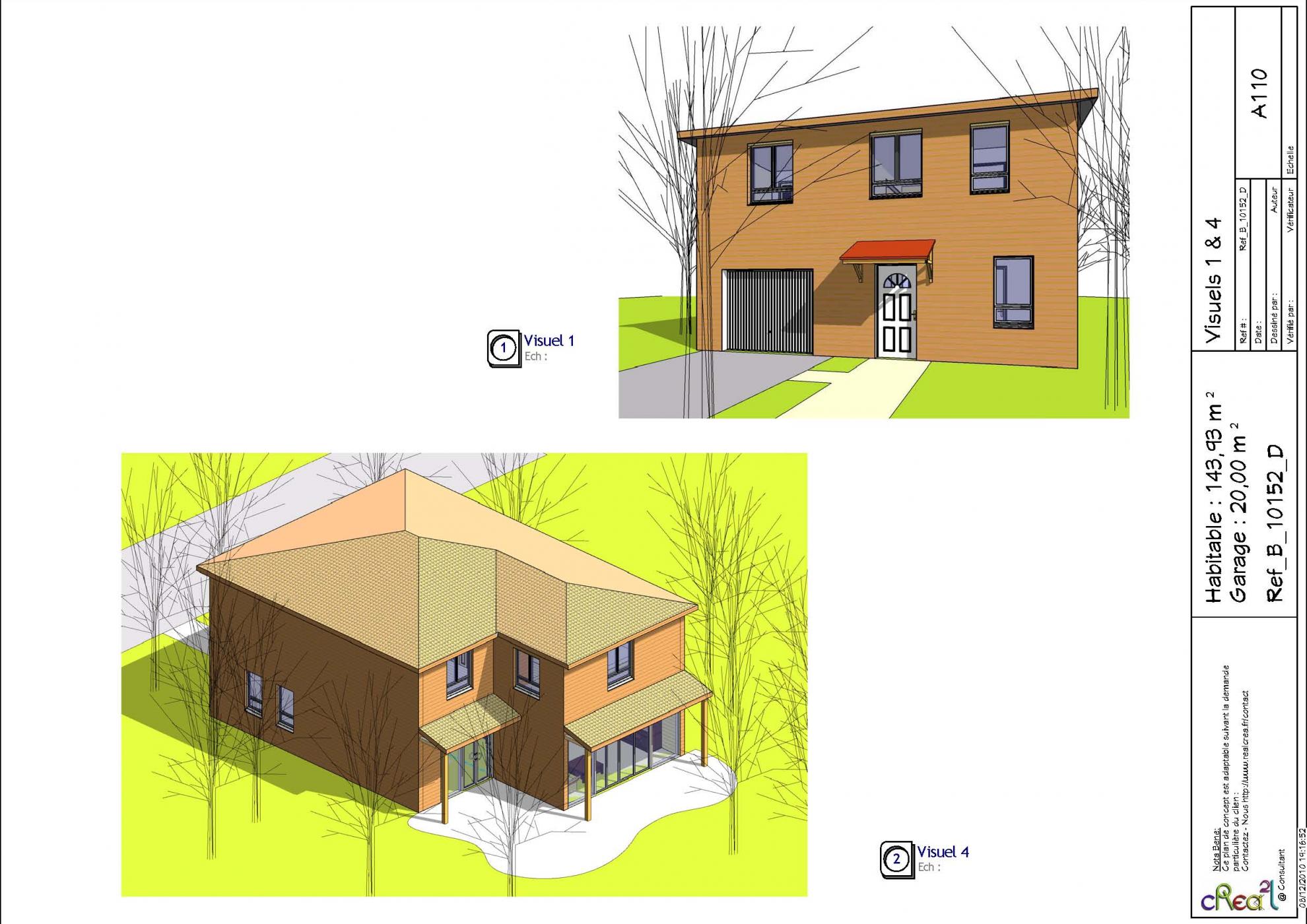 Plan B_10152_D : Maison contemporaine en bois 4 chambres 144 m² habitables + garage intégré