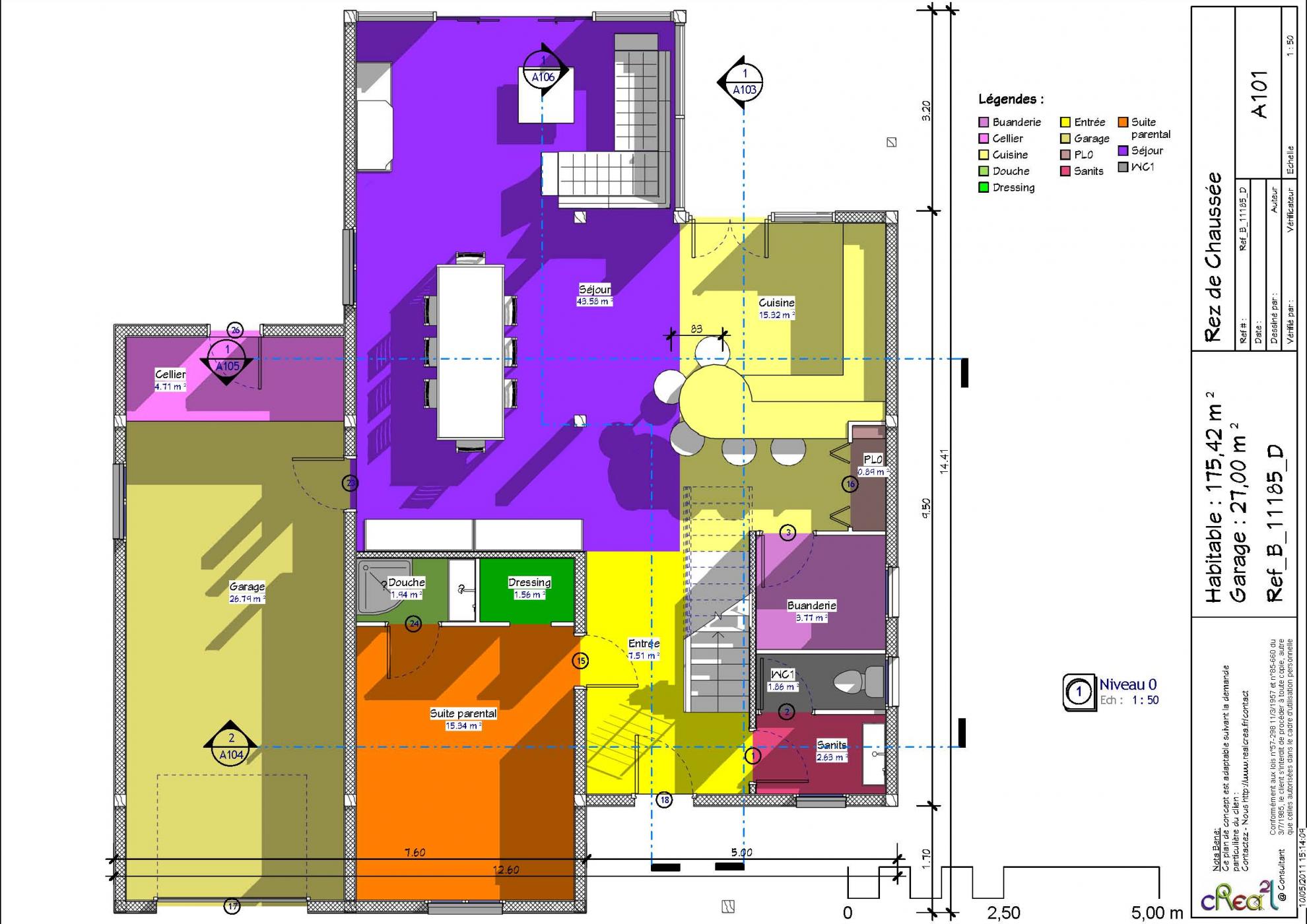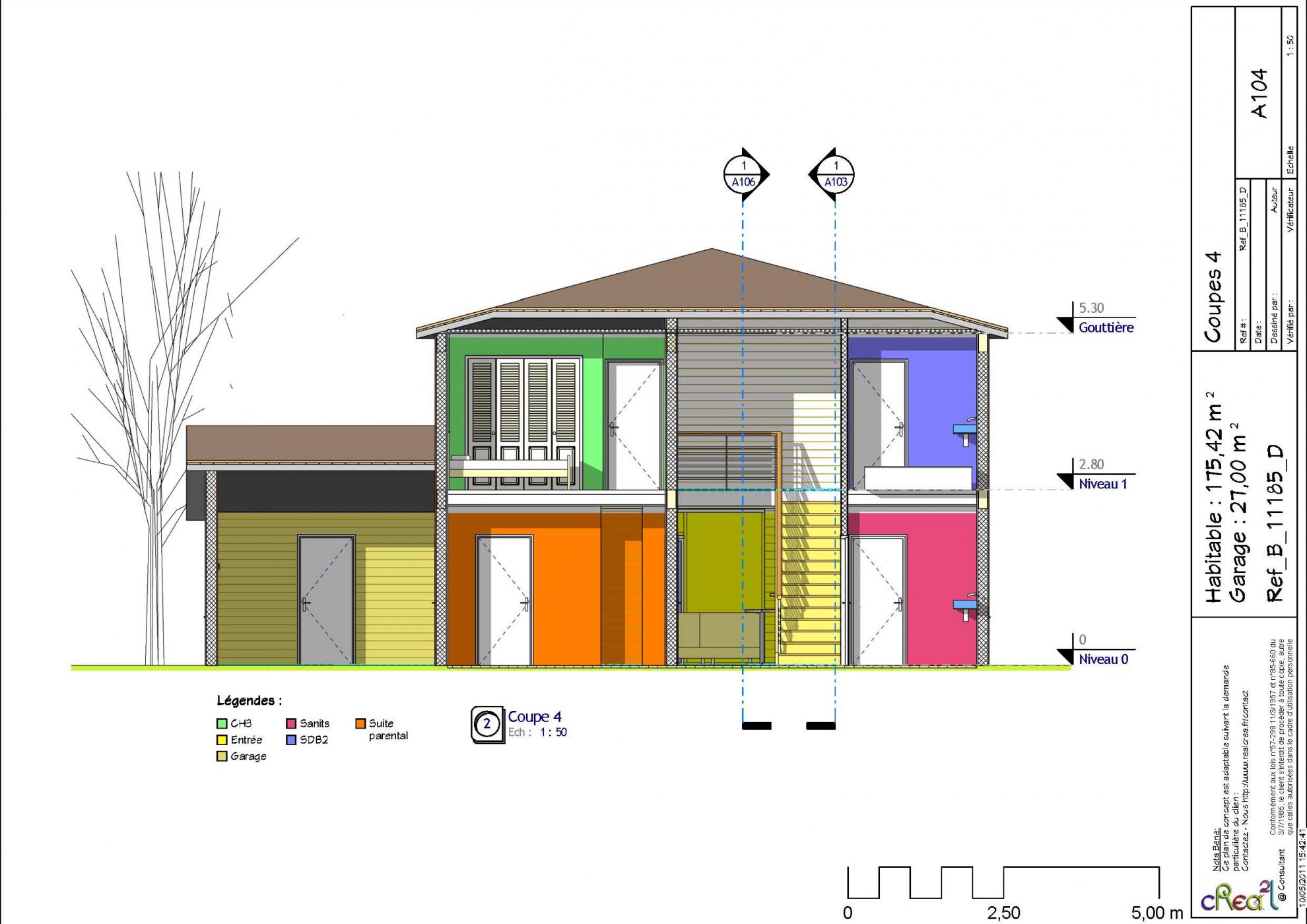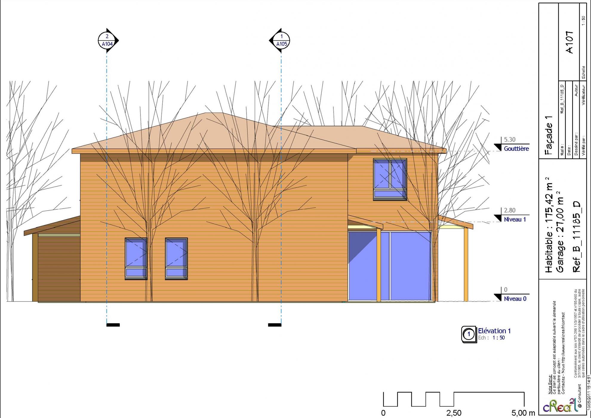 Plan B_11185_D : Maison en bois contemporaine, R+1, 5 chambres, 172 m² habitables, double garages.