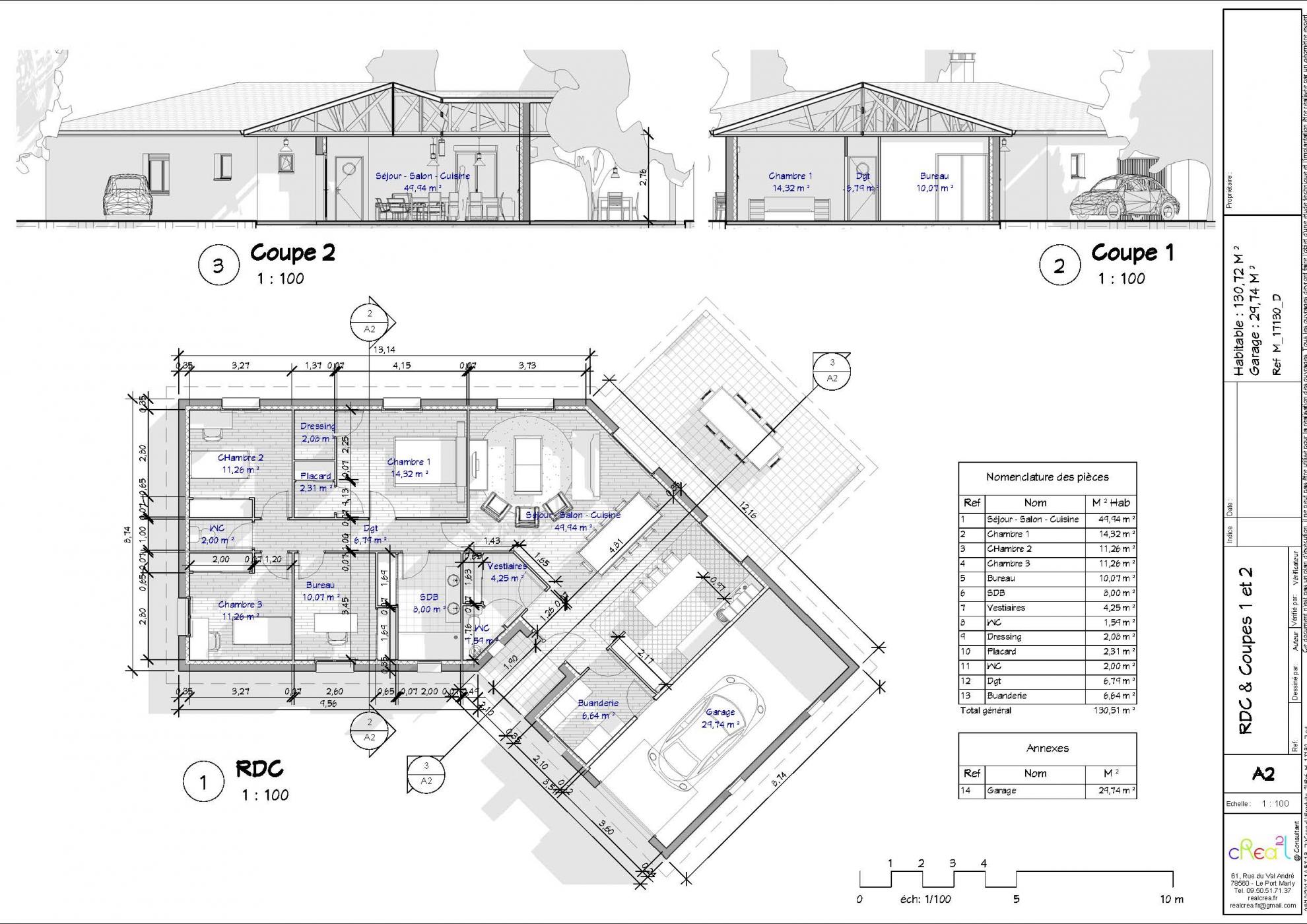 Plan Co_14183_D : Maison contemporaine R+1, 173 M², avec 15 Containers maritimes de 6 M, F5...